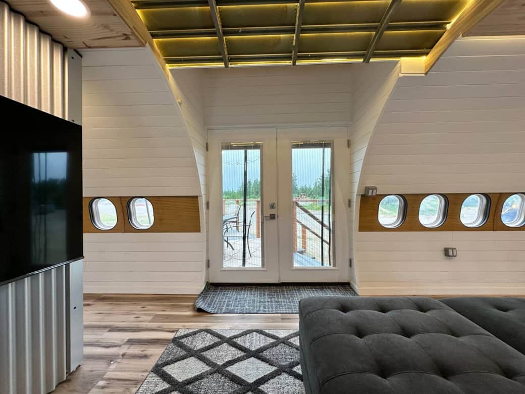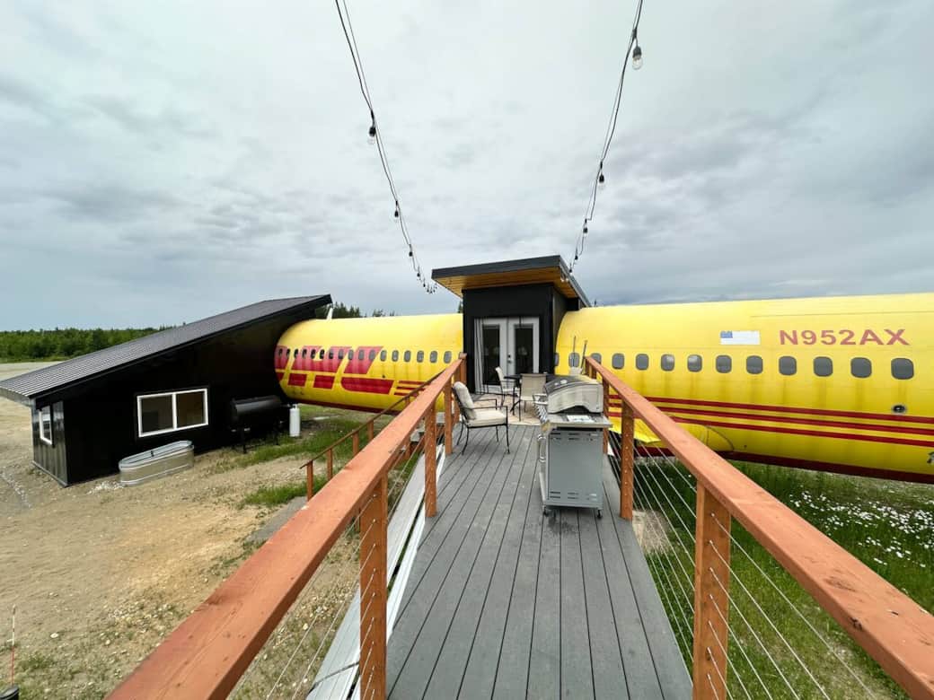 Climb aboard your Private Jet and enjoy this Douglas DC-9 converted into a full 3 bed / 2 bath house! Complete with full kitchen, bathroom, sauna and wing deck. Hangout in the cockpit and have a beer in the captain's chair, or grill up some Salmon and Steaks on the wing deck overlooking the private runway. Fly in luxury with heated floors, lounge in the belly cargo (kid's room), or kick back and enjoy the big-screen TV in first-class (living room). Ask us about tours and things to do nearby! The airplane house is located alongside a 1,900’ long private runway that you can fly in or drive in to. Our other airplane home is also available: https://airbnb.com/h/dc6 The runway separates your private aircraft from the other rental cabins located on our property giving you privacy and quiet! While it is an active runway, we generally have only 5-10 flights per week and all during daylight hours. We're about 10 mins from restaurants and grocery stores, 15-20 minutes from "the city". The property has trails for walking in the summer and cross country skiing in the winter. We connect to a large network of snow machine trails around Big Lake. You can go ice fishing, dog sledding, and snow machining all within minutes of the property. In the summer we offer air tours, glacier tours, bear tours, and fishing all direct from the property. Ask your host if you have any more questions about things to do on your trip! The property is easy to access from the main road even in winter. Roads are paved and snow plowed, and it is about an hour drive to downtown Anchorage. You'll climb aboard up a flight of stairs through the private jet ridge. You'll find your washer and dryer there and a hallway to access the Master Suite, full bathroom, and guest bedroom, as well as the Kitchen moving forward, living area, dining room, and Cockpit. There is also a kids room access via a small ladder down into the belly cargo area with a twin mattress. You can contact your Captain at anypoint during your stay via messages here on the airbnb app or via phone. We monitor the radio from 8am to 8pm 7 days/per week. If you get radio silence, you can satellite text us at as we may be out of cell range while flying. This is a real airplane that has flown around the world for many years. It has been meticulously gone over to ensure it is comfortable and safe for all of our guests. That being said, common sense is still required when walking around the outside of the aircraft and poking your head into all the compartments you do not normally have access to as a passenger. Please be safe, watch out for sharp edges, and realize that while you are welcome to explore and put your hands on all parts of the airplane inside and out, there are many parts and pieces of the airplane that still can hurt you if you do not know what you are doing. We do have an additional guest charge or $50 per guest for guests not listed in your initial reservation. There is no smoking or vaping anywhere inside or outside on the 100 acre property ($250 fine). There are tons of activities to do within a short drive or short bush plane flight of the property including, ice fishing, glacier tours, paddleboarding, snow machining, dog sleds, kayaking, bear tours, fishing charters, etc. Ask your host about all of the options to book out an EPIC experience!
